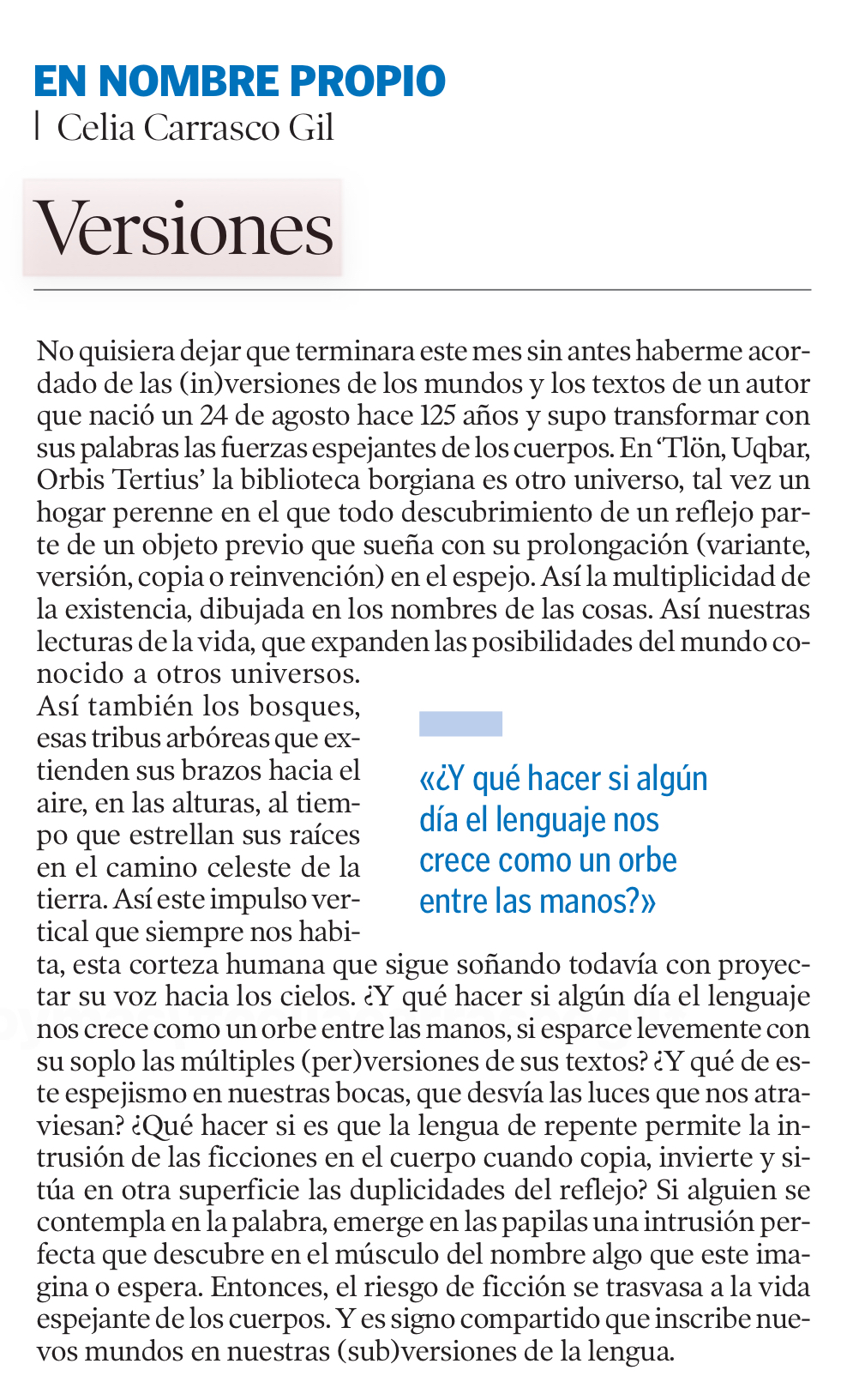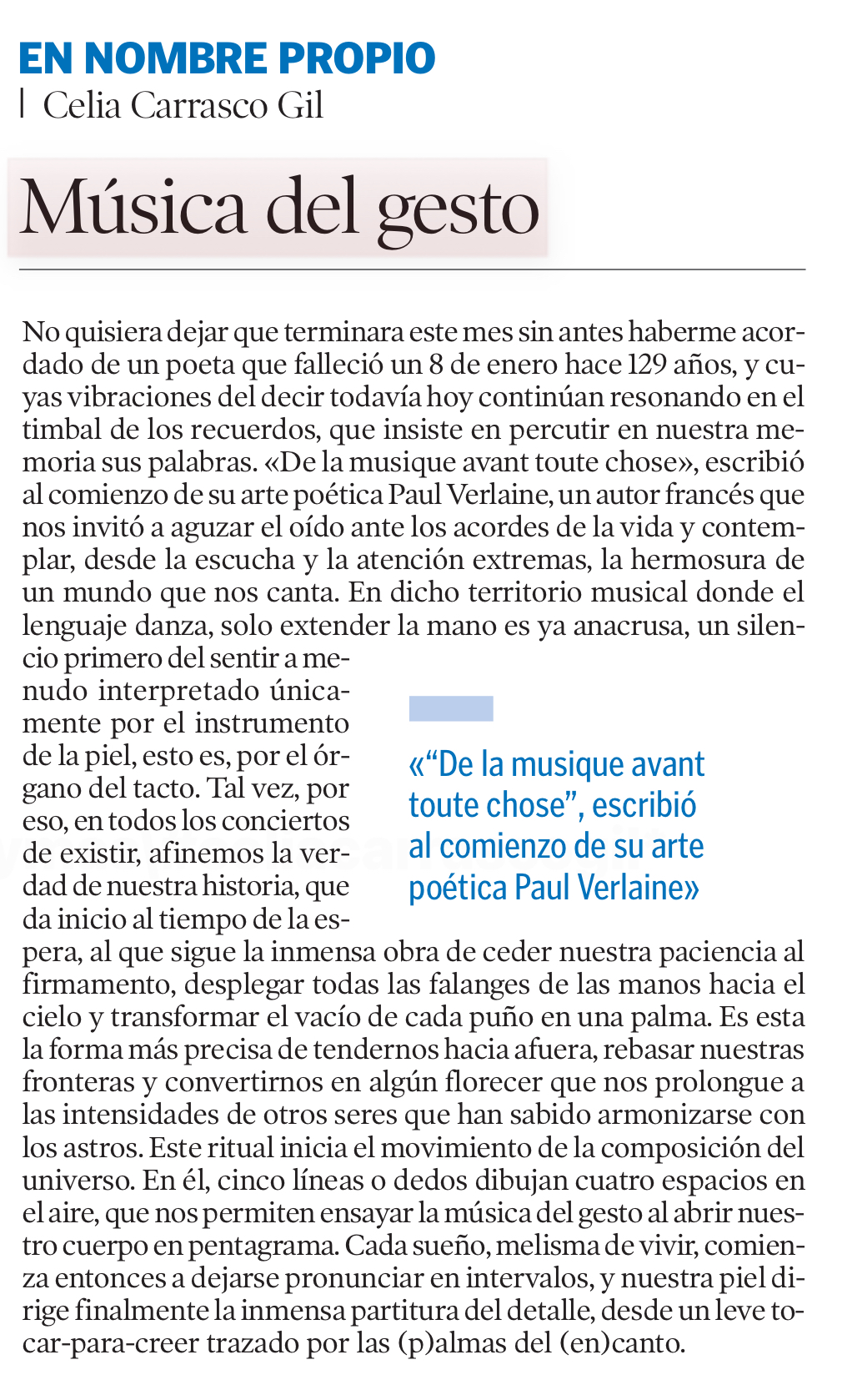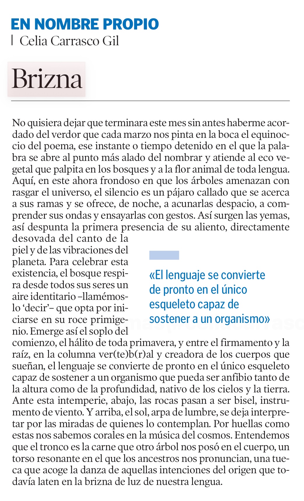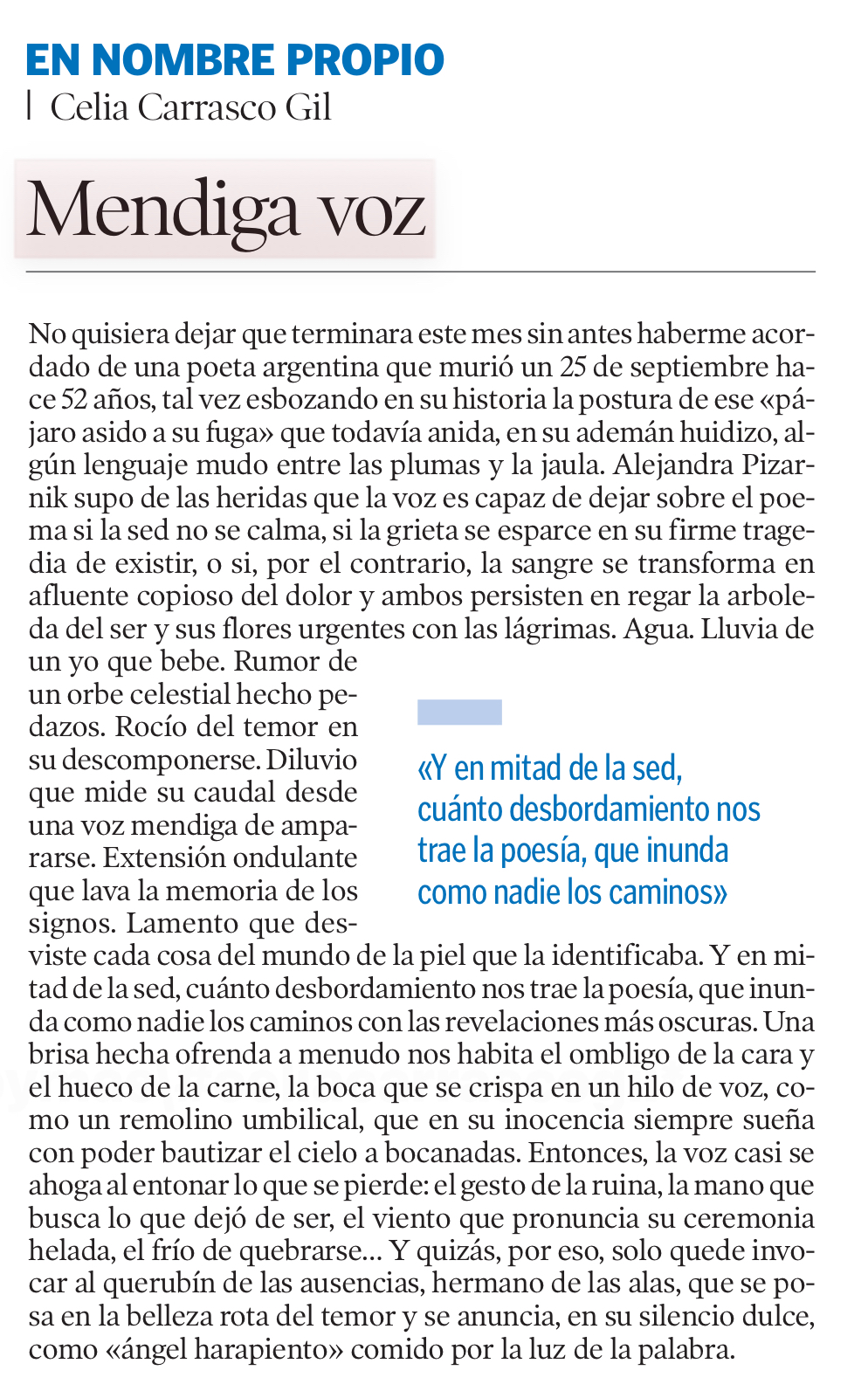 Celia Carrasco Gil, «La distancia y la cercanía o la multiplicidad de las voces», Heraldo de Aragón, Artes & Letras, 722, p. 3.